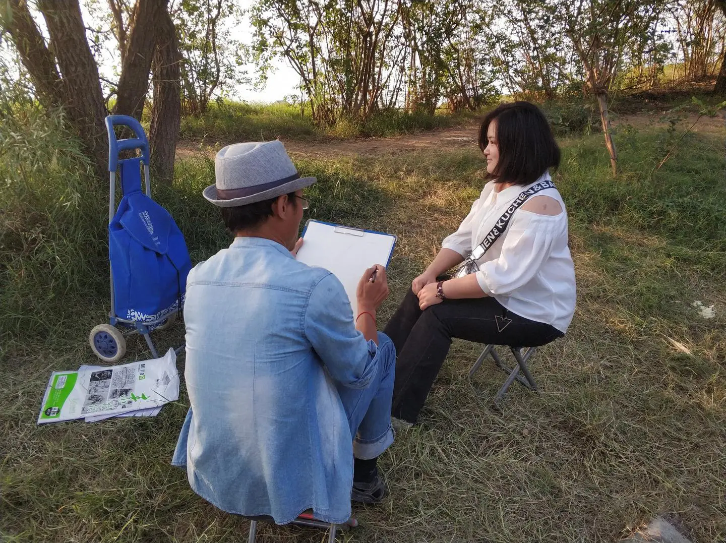 又到了湖边广场,王二下了洞庭湖的堤坝,走上一条绕湖的小路,这条路与洞庭大堤间有一洼湖水。前面的一棵树下,一位瘦男孩在为一个胖女孩画素描,女孩儿时而绷不住笑起来:“你别逗我,我不好意思。”再往前走,一个中年男性疾走两步,抱住了一个穿着连衣裙的年轻姑娘,女生笑得像一阵银铃,穿着短裤的中年男性轻声问她:“你怎么不抱着我?”女生接着笑:“我嫌你丑!”中年男性放开了她,女生站在石头砌成的小堤上,侧身对着中年男性,手抚着在微风下散开的头发,中年男性便半蹲着给她拍照。