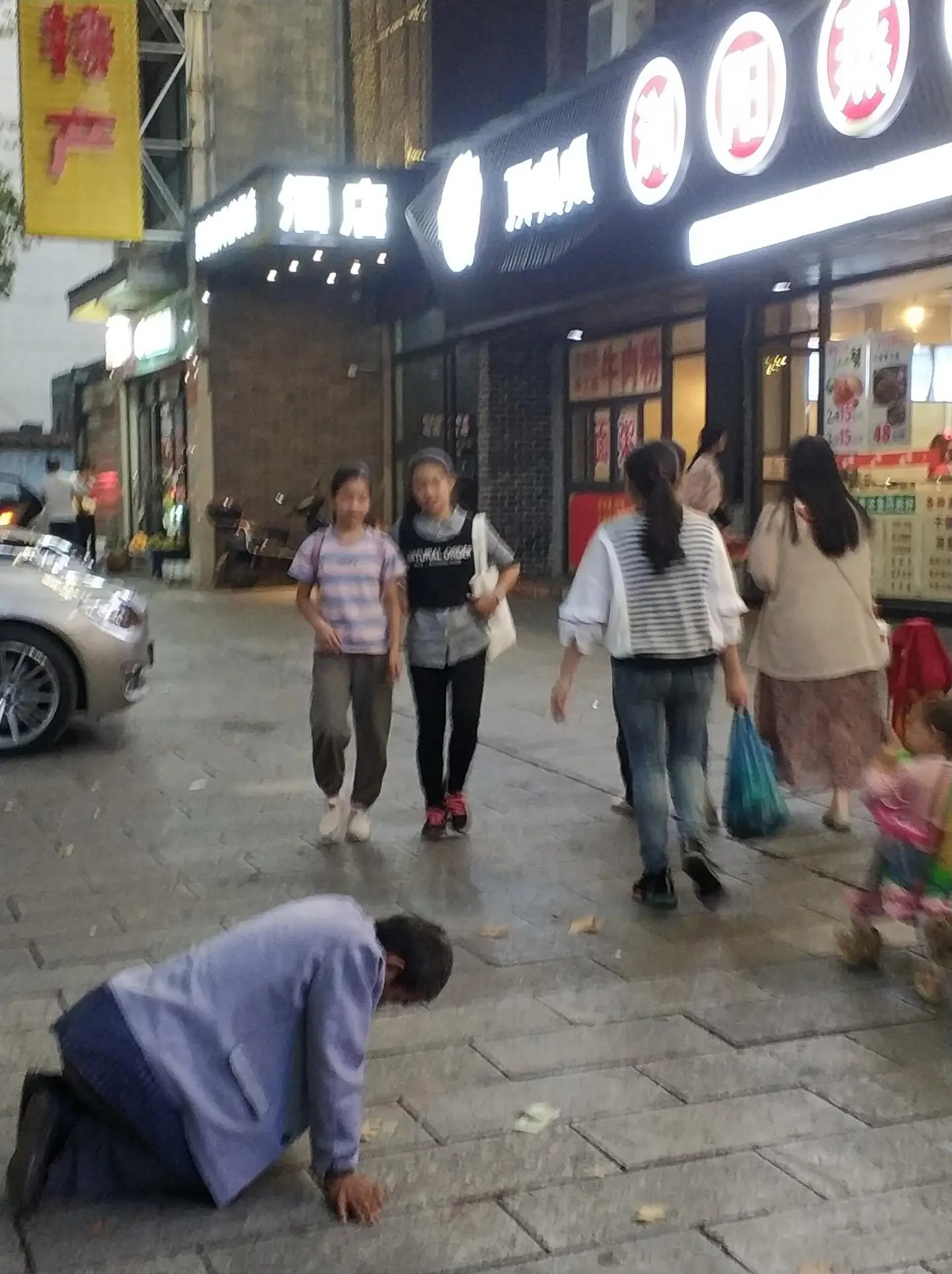 王二渐觉寒冷,太阳快落山了,他沿着一条小路,上了堤坝,走到了路旁。岳阳楼景区依旧闭着门,对面是一条繁华的街道,现在都亮着灯,三三两两的穿着学生制服的姑娘小伙儿,说说笑笑,他们大踏步向前走着。突然间,王二看到一个中年男人跪在地上,他垂着头,石板路上粘着斑驳的黑渍,面前是一家茶叶店,门口有闪动的招牌,只剩下“茶”字的一撇和一捺。