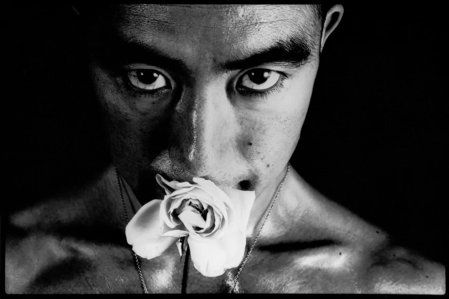 三岛对这些照片产生了强烈的兴趣,便找到细江英公为自己拍写真:“我让你拍,你就随心所欲尽情地拍。”,当时担任细江助理的是森山大道,之后成了举世闻名的摄影师(笔者有他最喜欢的理光 gr 相机,哈哈)。这些照片在 1961 年集结成影集《蔷薇刑》(Killed By Roses)发表,标题来自三岛,节选几张照片如下(本文的封面图出自这一专辑):