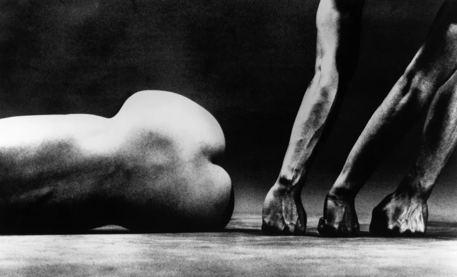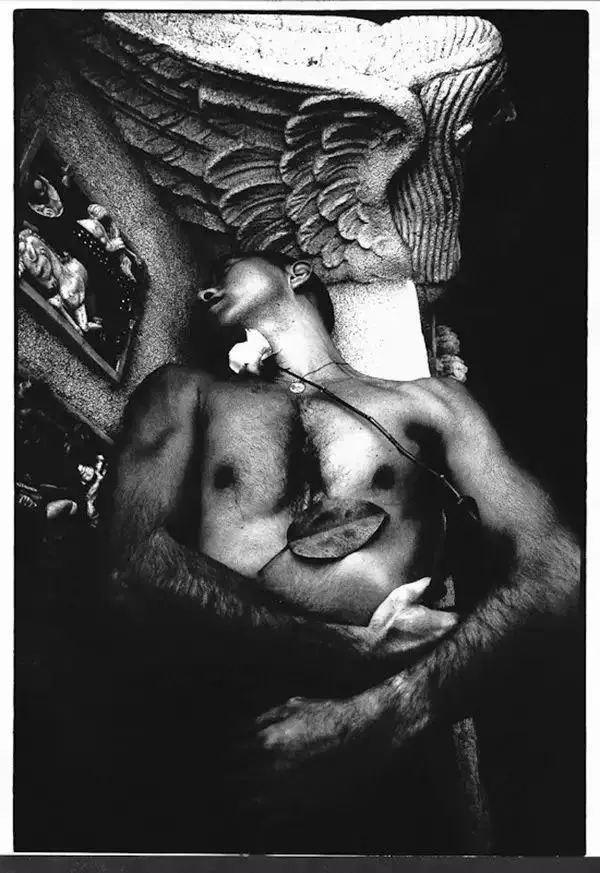 三岛的第一本摄影集的故事是这样的。1959 年,舞蹈家土方巽发表了基于三岛小说《禁色》的舞蹈作品,摄影师细江英公看了之后非常感动,便找土方巽合作拍了专辑《男人与女人》,下面是其中的几张照片(笔者也很喜欢,颇有情欲和力量感):
