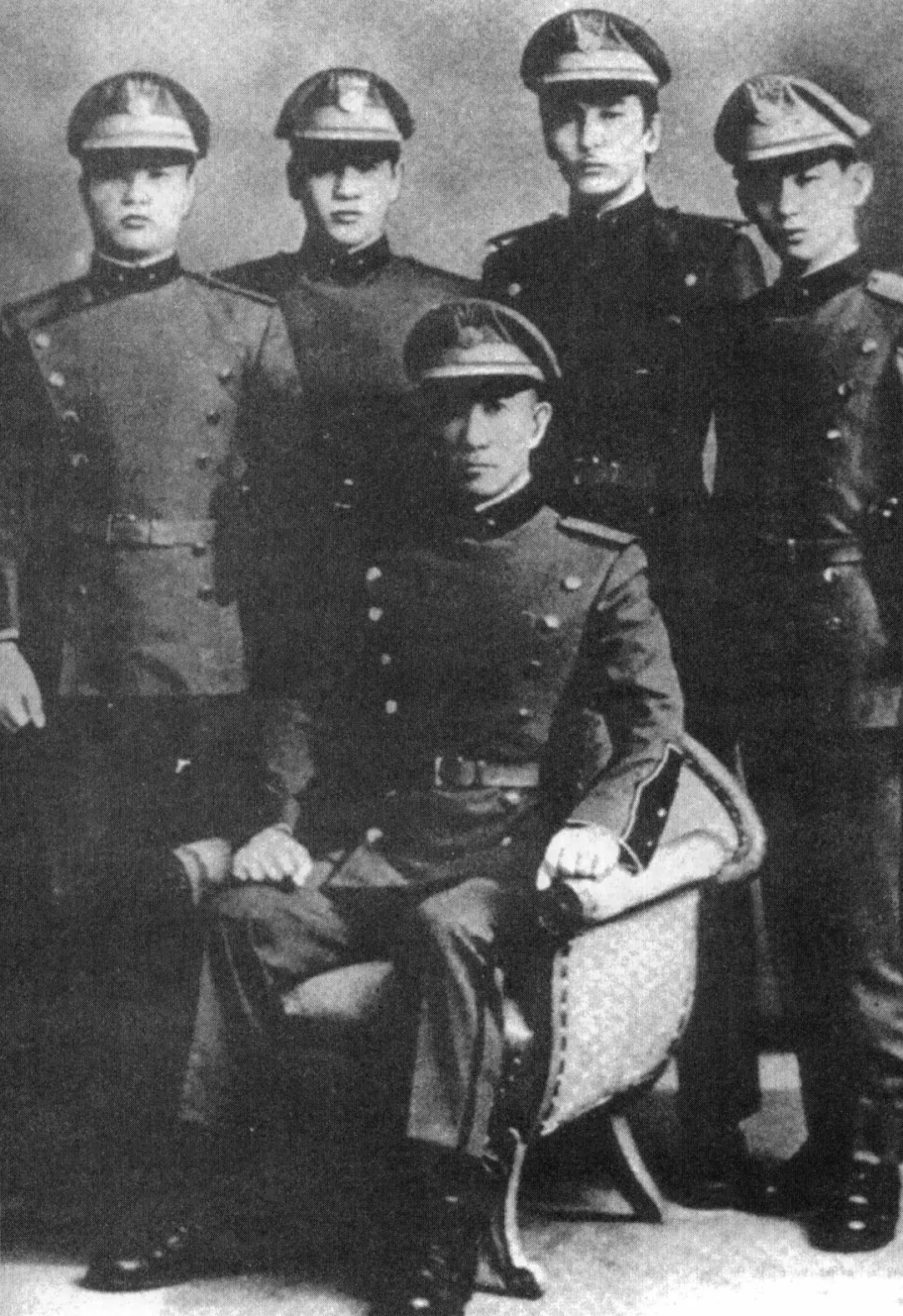 (下图是三岛事件中全部的五个盾会成员,后排左起:森田必胜、古贺浩靖、小川正洋、小贺正义。这张照片拍于摄影社东条会馆,这里主拍婚纱照。三岛看到照片后跟四人开玩笑:“东条会馆的摄影师们就是有本事把每个人都拍得漂漂亮亮的。”)