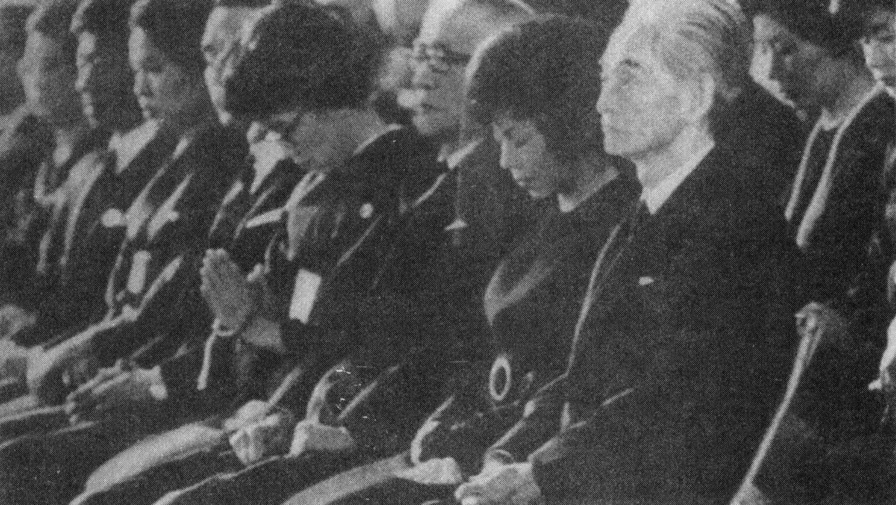 (下图是三岛的葬礼现场,右起:川端康成、遗孀瑶子、父亲平岗梓、母亲平岗倭文重)