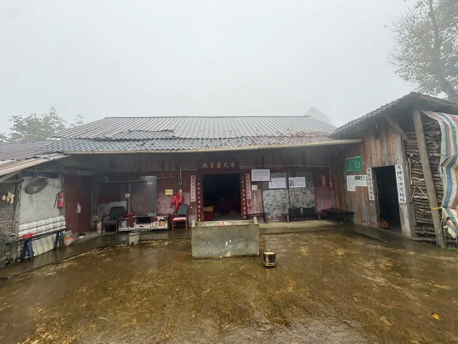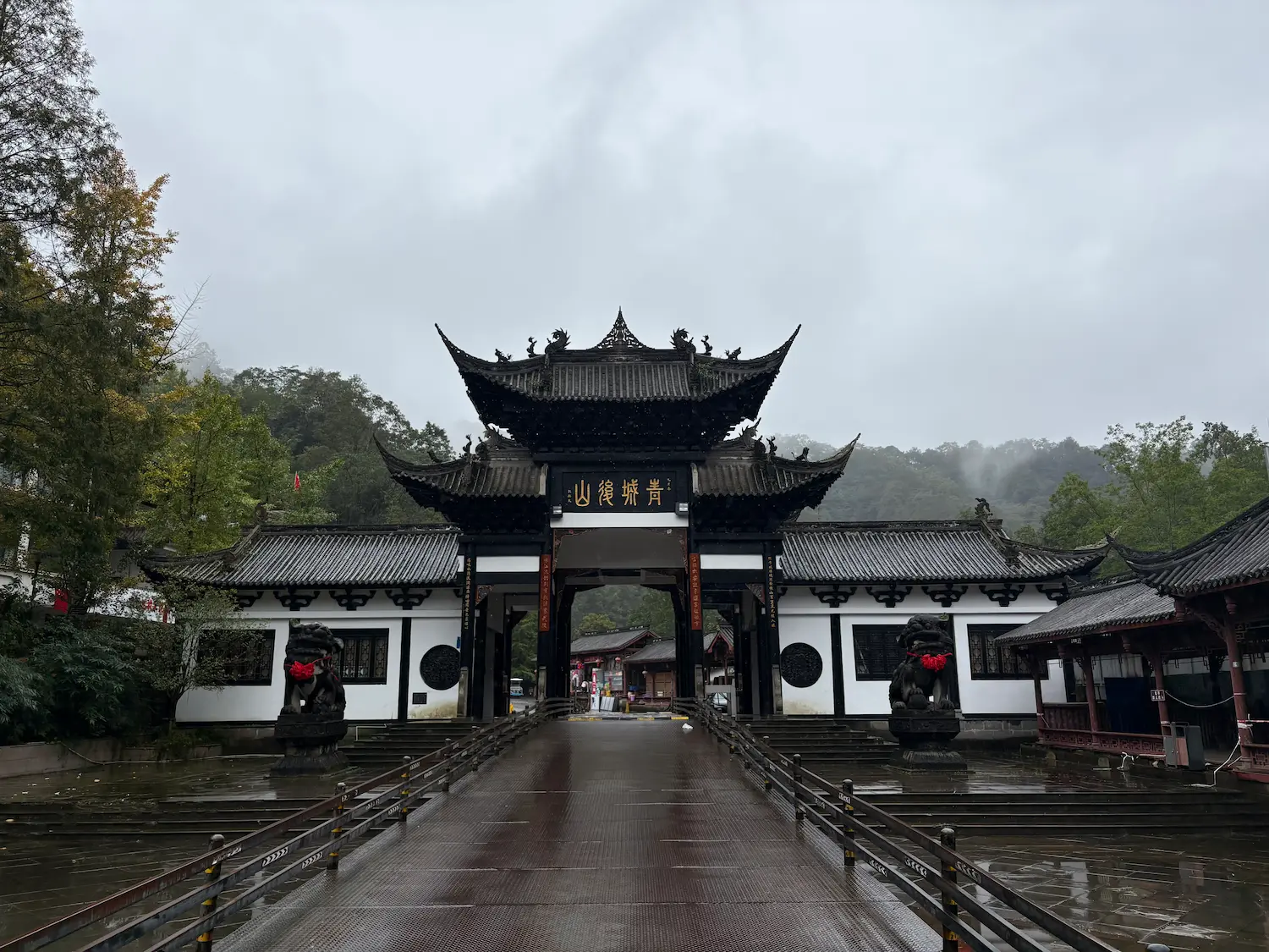 走了会儿先看到南天大门,再往上走一些台阶路就到了一个道观,住着一位道姑一条狗一只大猫一只小猫。这里才是青城山顶。此处的观景台对着汶川,天气好的时候能看到汶川地震震中,附近有座山在地震后多了个🐼图案。今天下雨大雾,什么都看不见。