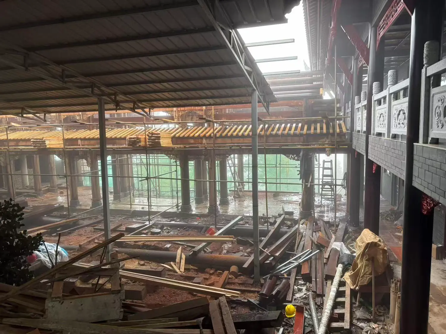 走到正在施工的白云寺,门口慈眉善目的道士说这就是景区的尽头了。但这里不是山顶,通向山顶的路在寺庙后边,所以会面临四个选择。一是调头下山,二是从厕所后边的烂路绕上去,三是从白云寺紧闭着的一闪门穿过去,这里有两个道士把守(但旁边的大殿里好像供奉着佛祖,没仔细看),不知道会遇到什么阻碍,四是付费给寺里揽客的司机,他们可以带游客走出景区乘车从汶川下山绕到青城山高铁站,走的就是那扇紧闭的门,外边是车可以走的路,可以到山顶的路。